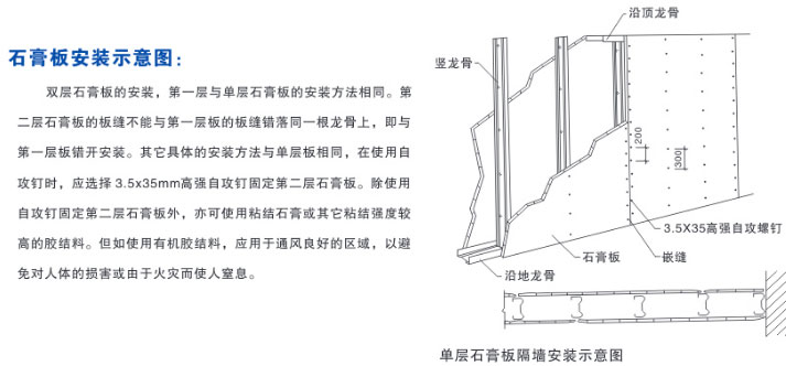 產(chǎn)品名稱:單層石膏板安裝示意圖